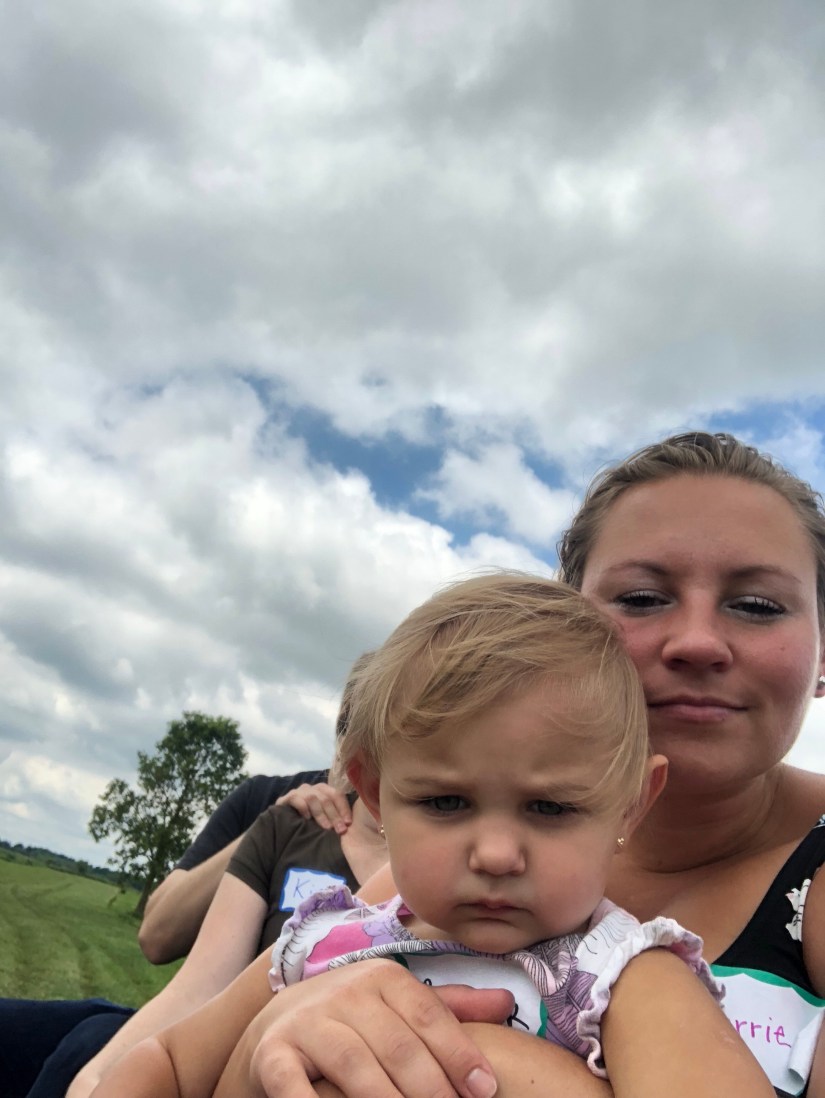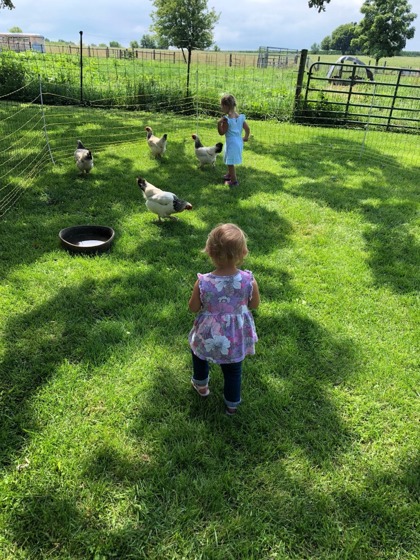 I got home and had to run over to my parents to pick up a sausage and peppers dish. My mom made it for an open house at an organic farm she volunteers at. We were bringing the kids there for them to check it out. It was pretty fun they played with some chickens, went on a hayride, and had a quick lunch. We all had a good time.