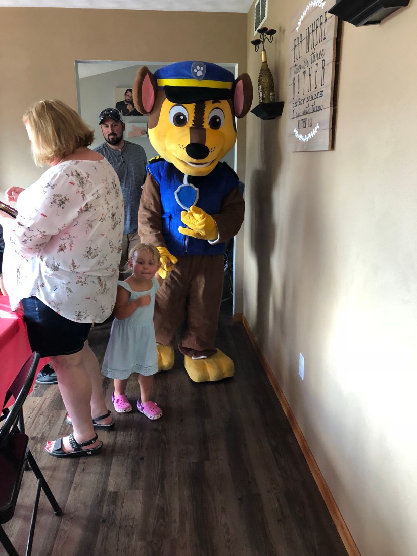 Then we were off to Owens birthday. (Late unfortunately, I don’t like being late to stuff) it was a blast, the kids and us had so much fun. They got to see Chase from Paw Patrol, jump on a trampoline, play on a swing set and a bunch of other stuff. Thanks to Tim and Rachel for having us! Now the kids are passed out in the car while we stop at a couple stores.